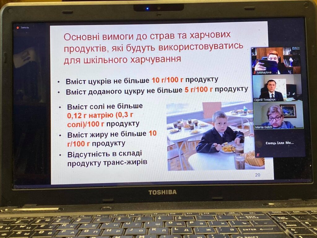 Відеоконференція об’єднала представників медицини, владних структур, громадських організацій, профільних асоціацій, наукових установ, закладів вищої освіти, фахівців підприємств-виробників дитячого харчування, разом обговорювали надзвичайно широке коло питань – від державного контролю за забезпеченням здорового харчування дітей в Україні до реформи шкільного харчування та експертизи сировини і якості продуктів харчування дітей.