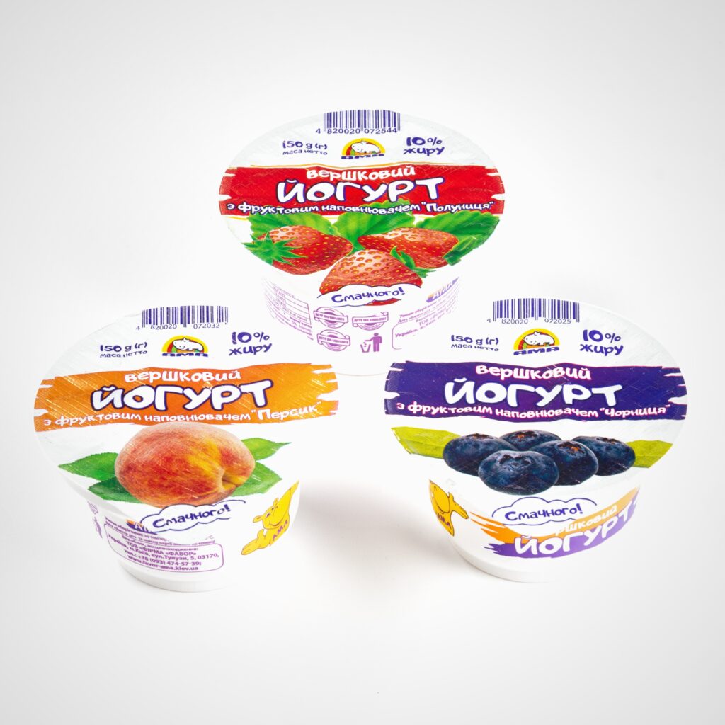 Йогурти виробляють лише з натуральними фруктовими наповнювачами, мають приємний ніжний фруктовий смак та тонкий аромат.